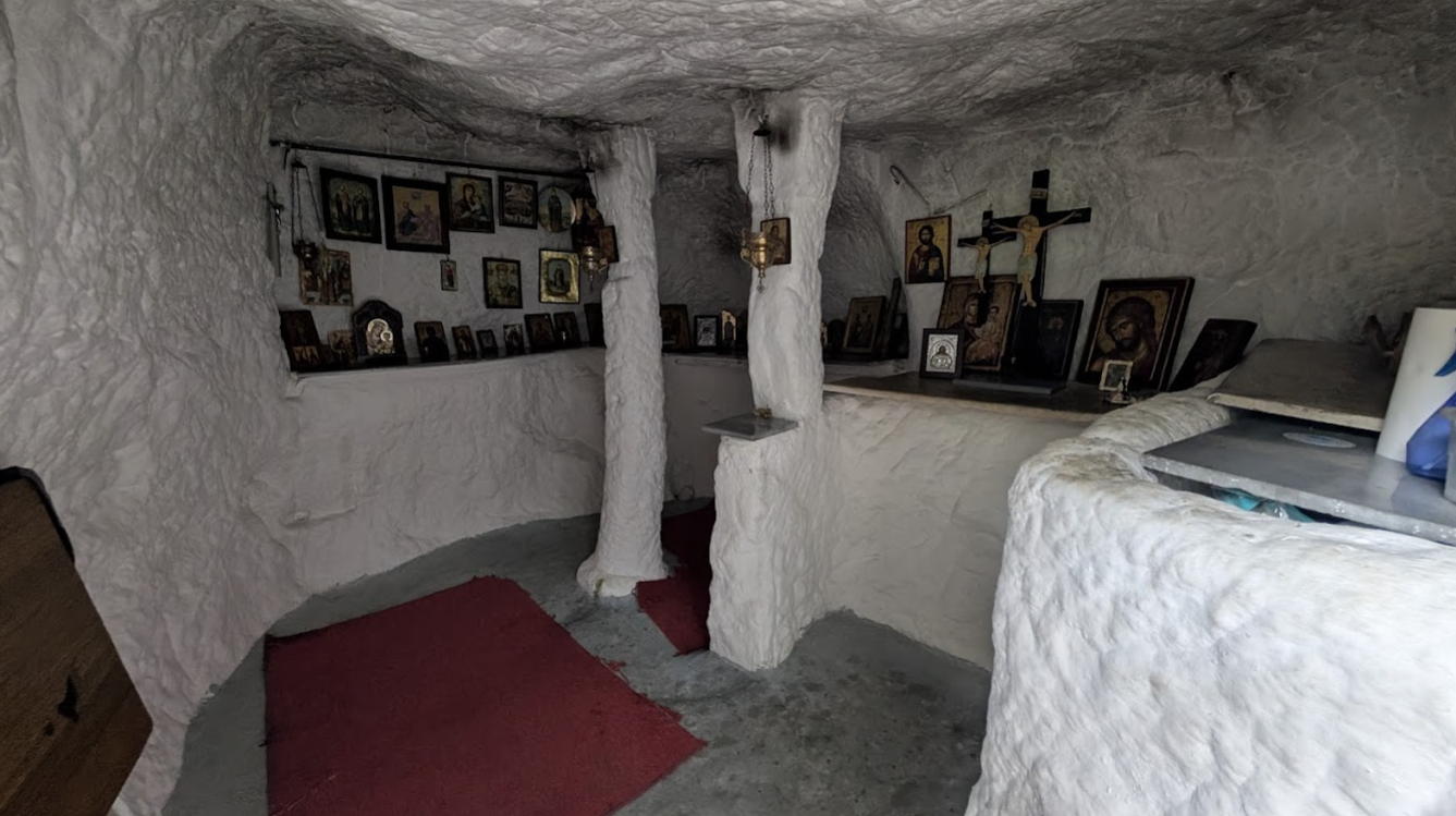 Η πεζοπορία μας κινείται σε παλιά μονοπάτια που οδηγούν σε ασκηταριά, σημεία απομόνωσης και σιωπής, όπου η σχέση ανθρώπου και βράχου γίνεται σχεδόν προσωπική υπόθεση. Επισκεπτόμαστε τη Σκήτη του Αγίου Πνεύματος, ένα από τα πιο χαρακτηριστικά και κατανυκτικά σημεία της περιοχής, χτισμένο σε απόλυτη αρμονία με τον βράχο που το φιλοξενεί.